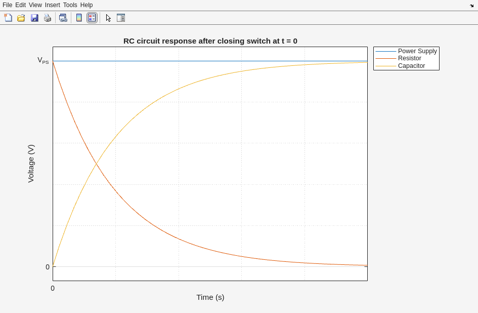 Running SmokeTests >> Running CapacitorsChargeDischarge.mlx [Warning: The resistor's voltage would be equal to the power supply's voltage right after the switch closes.] [> In CapacitorsChargeDischarge>CheckExercise6 (line 14) In CapacitorsChargeDischarge (line 1) In run (line 112) In SmokeTests/SmokeRun (line 79)] [Warning: The capacitor's voltage would be zero right after the switch closes.] [> In CapacitorsChargeDischarge>CheckExercise6 (line 21) In CapacitorsChargeDischarge (line 1) In run (line 112) In SmokeTests/SmokeRun (line 79)] Good job! You defined the differential equation correctly. DifferentialEquation(t) = diff(V_C(t), t) == (V_PS - V_C(t))/(C*R) InitialCondition = V_C(0) == 0 V_C = V_PS - V_PS*exp(-t/(C*R)) Model 'SimpleRC' was exported from R2025a to R2024a. To find blocks that were removed during the export operation, <a href="matlab:slexportprevious.utils.displayReplacedBlocks('SimpleRC')">click here</a>. Save the model to remove this notification. [Warning: Run the simulation in the SimpleRC.slx Simscape model if you want to visualize the results.] [> In CapacitorsChargeDischarge (line 167) In run (line 112) In SmokeTests/SmokeRun (line 79)] [Warning: The resistor is always connected to the capacitor independent of the state of each switch.] [> In CapacitorsChargeDischarge (line 174) In run (line 112) In SmokeTests/SmokeRun (line 79)] The capacitor was storing energy that can be delivered back to the resistor. The energy stored in the capacitor is: U == (1/2)*C*V_C with: U is the energy in joules C is the capacitance in farads V_C is the capacitor voltage [Terse] Diagnostic logged (2025-10-03 18:06:21): Figure saved to: --> /tmp/d70a5b92-aede-4ab3-876c-68acecd4114a/Figure_b3cfd837-0dd0-495a-b462-b938768a6563.png [Terse] Diagnostic logged (2025-10-03 18:06:23): Figure saved to: --> /tmp/d70a5b92-aede-4ab3-876c-68acecd4114a/Figure_e640dce5-ab18-452c-a253-2208449ee4ec.png .>> Running CapacitorsFundamentals.mlx [Warning: Please select a valid answer.] [> In CapacitorsFundamentals>CheckExercise1 (line 6) In CapacitorsFundamentals (line 1) In run (line 112) In SmokeTests/SmokeRun (line 79)] Model 'SimpleRC' was exported from R2025a to R2024a. To find blocks that were removed during the export operation, <a href="matlab:slexportprevious.utils.displayReplacedBlocks('SimpleRC')">click here</a>. Save the model to remove this notification. [Warning: Run the simulation in the SimpleRC.slx Simscape model if you want to visualize the results. Reopen and run the <a href="matlab: open('SimpleRC.slx')">simulation</a> ] [> In CapacitorsFundamentals (line 35) In run (line 112) In SmokeTests/SmokeRun (line 79)] [Warning: Please select a valid answer.] [> In CapacitorsFundamentals>CheckExercise2 (line 42) In CapacitorsFundamentals (line 37) In run (line 112) In SmokeTests/SmokeRun (line 79)] [Warning: Please. enter your answer in the edit field above.] [> In CapacitorsFundamentals>CheckExercise3 (line 123) In CapacitorsFundamentals (line 109) In run (line 112) In SmokeTests/SmokeRun (line 79)] [Warning: Please. enter your answer in the edit field above.] [> In CapacitorsFundamentals>CheckExercise4 (line 177) In CapacitorsFundamentals (line 153) In run (line 112) In SmokeTests/SmokeRun (line 79)] [Warning: Select an answer] [> In CapacitorsFundamentals>CheckExercise5 (line 211) In CapacitorsFundamentals (line 206) In run (line 112) In SmokeTests/SmokeRun (line 79)] [Terse] Diagnostic logged (2025-10-03 18:06:27): Figure saved to: --> /tmp/d70a5b92-aede-4ab3-876c-68acecd4114a/Figure_ffa001d5-2ed9-4ea4-a56b-8ea25cbba406.png [Terse] Diagnostic logged (2025-10-03 18:06:35): Figure saved to: --> /tmp/d70a5b92-aede-4ab3-876c-68acecd4114a/Figure_ff3eeff5-06a5-4ac3-961a-924e2f0f39a8.png [Terse] Diagnostic logged (2025-10-03 18:06:36): Figure saved to: --> /tmp/d70a5b92-aede-4ab3-876c-68acecd4114a/Figure_143fc6de-a8c0-4c2b-98f5-36368559fe30.png [Terse] Diagnostic logged (2025-10-03 18:06:36): Figure saved to: --> /tmp/d70a5b92-aede-4ab3-876c-68acecd4114a/Figure_c7ea015e-e7b3-49ed-8e19-1ffa94e30967.png .>> Running ElectricFieldAndCharge.mlx Good job! You are fluent in Coulomb force! Consider the following charge distribution: A: a point charge with (q == 4 [C]) located at the origin of the coordinate system. B: a point charge with (q == 1 [C]) located at (0.2 [m] ) along the x-axis. What is the magnitude and direction of the force acting on the charge B? [Warning: Please select two valid answers above.] [> In ElectricFieldAndCharge>CheckExercise2 (line 100) In ElectricFieldAndCharge (line 83) In run (line 112) In SmokeTests/SmokeRun (line 79)] In one dimension, the magnitude of the Coulomb force will look like this: [Warning: Please, select an answer] [> In ElectricFieldAndCharge>CheckExercise3 (line 266) In ElectricFieldAndCharge (line 263) In run (line 112) In SmokeTests/SmokeRun (line 79)] What is the magnitude of an electric field 2 [m] away from a point charge with q == -5 [C]? [Warning: The answer you entered is not correct, make sure that you are using the right formula for the electric field.] [> In ElectricFieldAndCharge>CheckExercise4 (line 313) In ElectricFieldAndCharge (line 293) In run (line 112) In SmokeTests/SmokeRun (line 79)] Considering the following point charge distribution: Charge 1: q == 4 [C] located at 0.2 [m]from the origin on the x-axis Charge 2: q == 5 [C] located at 0.3 [m]from the origin on the x-axis What is the magnitude of the electric field at the origin? [Warning: The ] [> In ElectricFieldAndCharge>CheckExercise5 (line 426) In ElectricFieldAndCharge (line 403) In run (line 112) In SmokeTests/SmokeRun (line 79)] The line charge density is lambda == -0.2 [C]/[m]^2. The line is approximately L == 23.8 [m] long. If the line is broken down into 8 segments. What is the charge on each segment? [Warning: Try again! The individual charge should be a function of λ, L and the number of segments.] [> In ElectricFieldAndCharge>CheckExercise6 (line 538) In ElectricFieldAndCharge