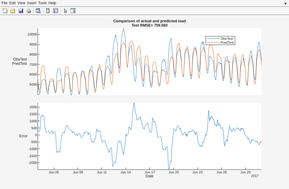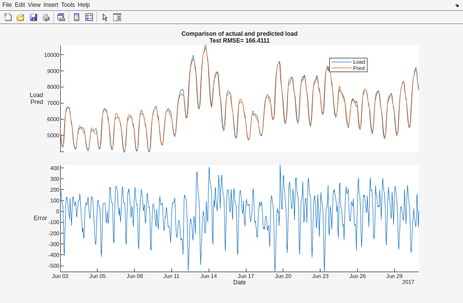 Running SmokeTests >> Running ElectricityLoadDataML.mlx Downloading 1 of 2 -> 20170501pal_csv.zip Download complete. Downloading 2 of 2 -> 20170601pal_csv.zip Download complete. Aggregating data from all files [Warning: Table variable names that were not valid MATLAB identifiers have been modified. Since table variable names must be unique, any table variable names that happened to match the new identifiers also have been modified.] Starting parallel pool (parpool) using the 'Processes' profile ... Connected to parallel pool with 2 workers. Preprocessing and cleaning data MAT files saved in /home/runner/work/Machine-Learning-for-Regression/Machine-Learning-for-Regression/Scripts\ElectricLoadData .>> Running FE1_ProgrammaticML.mlx NYCData = 17568×1 timetable Date Load ___________________ ______ 05/01/2017 00:00:00 4432.2 05/01/2017 00:05:00 4410.2 05/01/2017 00:10:00 4399.8 05/01/2017 00:15:00 4389.9 05/01/2017 00:20:00 4380.3 05/01/2017 00:25:00 4368.8 05/01/2017 00:30:00 4359.3 05/01/2017 00:35:00 4350.3 05/01/2017 00:40:00 4341.1 05/01/2017 00:45:00 4329.9 05/01/2017 00:50:00 4321 05/01/2017 00:55:00 4313 05/01/2017 01:00:00 4295.2 05/01/2017 01:05:00 4275.7 05/01/2017 01:10:00 4256.5 05/01/2017 01:15:00 4238.1 05/01/2017 01:20:00 4218.7 05/01/2017 01:25:00 4201.5 05/01/2017 01:30:00 4184.4 05/01/2017 01:35:00 4167.4 05/01/2017 01:40:00 4149.7 05/01/2017 01:45:00 4133.5 05/01/2017 01:50:00 4118.7 05/01/2017 01:55:00 4102.6 05/01/2017 02:00:00 4087.9 05/01/2017 02:05:00 4076.9 05/01/2017 02:10:00 4065.6 05/01/2017 02:15:00 4054.8 05/01/2017 02:20:00 4046.1 05/01/2017 02:25:00 4034.8 05/01/2017 02:30:00 4024.4 05/01/2017 02:35:00 4013.2 05/01/2017 02:40:00 4004.2 05/01/2017 02:45:00 3996.5 05/01/2017 02:50:00 3987.9 05/01/2017 02:55:00 3981.4 05/01/2017 03:00:00 3973 05/01/2017 03:05:00 3964.5 05/01/2017 03:10:00 3957.9 05/01/2017 03:15:00 3950.5 05/01/2017 03:20:00 3945.2 05/01/2017 03:25:00 3941.5 05/01/2017 03:30:00 3937.7 05/01/2017 03:35:00 3935.3 05/01/2017 03:40:00 3932.3 05/01/2017 03:45:00 3931.9 05/01/2017 03:50:00 3929 05/01/2017 03:55:00 3926 05/01/2017 04:00:00 3923.1 05/01/2017 04:05:00 3923.7 05/01/2017 04:10:00 3923.2 05/01/2017 04:15:00 3923.7 05/01/2017 04:20:00 3923 05/01/2017 04:25:00 3923.5 05/01/2017 04:30:00 3925.3 05/01/2017 04:35:00 3930.1 05/01/2017 04:40:00 3934.2 05/01/2017 04:45:00 3936.5 05/01/2017 04:50:00 3942.6 05/01/2017 04:55:00 3948.3 05/01/2017 05:00:00 3956.2 05/01/2017 05:05:00 3964.7 05/01/2017 05:10:00 3976.8 05/01/2017 05:15:00 3993.1 05/01/2017 05:20:00 4009.7 05/01/2017 05:25:00 4029 05/01/2017 05:30:00 4048.5 05/01/2017 05:35:00 4068.2 05/01/2017 05:40:00 4091 05/01/2017 05:45:00 4117.9 05/01/2017 05:50:00 4143.9 05/01/2017 05:55:00 4171.3 05/01/2017 06:00:00 4203.2 05/01/2017 06:05:00 4232.8 05/01/2017 06:10:00 4265.9 05/01/2017 06:15:00 4301.8 05/01/2017 06:20:00 4340.9 05/01/2017 06:25:00 4378.7 05/01/2017 06:30:00 4419.5 05/01/2017 06:35:00 4460.9 05/01/2017 06:40:00 4506.1 05/01/2017 06:45:00 4552.9 05/01/2017 06:50:00 4599.3 05/01/2017 06:55:00 4651.2 05/01/2017 07:00:00 4701.9 05/01/2017 07:05:00 4756.7 05/01/2017 07:10:00 4807.9 05/01/2017 07:15:00 4859.1 05/01/2017 07:20:00 4910.5 05/01/2017 07:25:00 4962.6 05/01/2017 07:30:00 5014.6 05/01/2017 07:35:00 5067.8 05/01/2017 07:40:00 5116.6 05/01/2017 07:45:00 5163 05/01/2017 07:50:00 5208.8 05/01/2017 07:55:00 5249.1 05/01/2017 08:00:00 5290.9 05/01/2017 08:05:00 5331.2 05/01/2017 08:10:00 5372.8 05/01/2017 08:15:00 5408.8 05/01/2017 08:20:00 5447.2 05/01/2017 08:25:00 5481.7 05/01/2017 08:30:00 5513.3 05/01/2017 08:35:00 5544 05/01/2017 08:40:00 5573.8 05/01/2017 08:45:00 5602.3 05/01/2017 08:50:00 5633.6 05/01/2017 08:55:00 5666.5 05/01/2017 09:00:00 5692.3 05/01/2017 09:05:00 5717.3 05/01/2017 09:10:00 5737 05/01/2017 09:15:00 5758.8 05/01/2017 09:20:00 5775.7 05/01/2017 09:25:00 5794.9 05/01/2017 09:30:00 5814.3 05/01/2017 09:35:00 5833.4 05/01/2017 09:40:00 5853 05/01/2017 09:45:00 5871.7 05/01/2017 09:50:00 5885.6 05/01/2017 09:55:00 5898.1 05/01/2017 10:00:00 5911.6 05/01/2017 10:05:00 5925.6 05/01/2017 10:10:00 5940.1 05/01/2017 10:15:00 5953.2 05/01/2017 10:20:00 5962.9 05/01/2017 10:25:00 5971.1 05/01/2017 10:30:00 5978.6 05/01/2017 10:35:00 5983 05/01/2017 10:40:00 5986.4 05/01/2017 10:45:00 5990.9 05/01/2017 10:50:00 5997.6 05/01/2017 10:55:00 6001.9 05/01/2017 11:00:00 6007.6 05/01/2017 11:05:00 6010.9 05/01/2017 11:10:00 6014.1 05/01/2017 11:15:00 6016.5 05/01/2017 11:20:00 6020.5 05/01/2017 11:25:00 6026 05/01/2017 11:30:00 6030.9 05/01/2017 11:35:00 6034.8 05/01/2017 11:40:00 6038.7 05/01/2017 11:45:00 6040.9 05/01/2017 11:50:00 6042.4 05/01/2017 11:55:00 6044.2 05/01/2017 12:00:00 6048.3 05/01/2017 12:05:00 6052.8 05/01/2017 12:10:00 6056.3 05/01/2017 12:15:00 6057.5 05/01/2017 12:20:00 6059.8 05/01/2017 12:25:00 6063.7 05/01/2017 12:30:00 6065.2 05/01/2017 12:35:00 6068.1 05/01/2017 12:40:00 6071.1 05/01/2017 12:45:00 6075.2 05/01/2017 12:50:00 6078.6 05/01/2017 12:55:00 6084.9 05/01/2017 13:00:00 6086.9 05/01/2017 13:05:00 6088.3 05/01/2017 13:10:00 6092.8 05/01/2017 13:15:00 6099.4 05/01/2017 13:20:00 6104.6 05/01/2017 13:25:00 6108.1 05/01/2017 13:30:00 6115.2 05/01/2017 13:35:00 6120.8 05/01/2017 13:40:00 6130.3 05/01/2017 13:45:00 6132.3 05/01/2017 13:50:00 6138.5 05/01/2017 13:55:00 6143.6 05/01/2017 14:00:00 6150.4 05/01/2017 14:05:00 6155.9 05/01/2017 14:10:00 6159.6 05/01/2017 14:15:00 6164.1 05/01/2017 14:20:00 6169.3 05/01/2017 14:25:00 6176.1 05/01/2017 14:30:00 6179.1 05/01/2017 14:35:00 6182.8 05/01/2017 14:40:00 6184 05/01/2017 14:45:00 6191.7 05/01/2017 14:50:00 6199.2 05/01/2017 14:55:00 6205 05/01/2017 15:00:00 6209.5 05/01/2017 15:05:00 6218 05/01/2017 15:10:00 6228.4 05/01/2017 15:15:00 6235.4 05/01/2017 15:20:00 6244.4 05/01/2017 15:25:00 6252.4 05/01/2017 15:30:00 6263.7 05/01/2017 15:35:00 6276.3 05/01/2017 15:40:00 6286.9 05/01/2017 15:45:00 6300.1 05/01/2017 15:50:00 6309.4 05/01/2017 15:55:00 6320.7 05/01/2017 16:00:00 6331.7 05/01/2017 16:05: