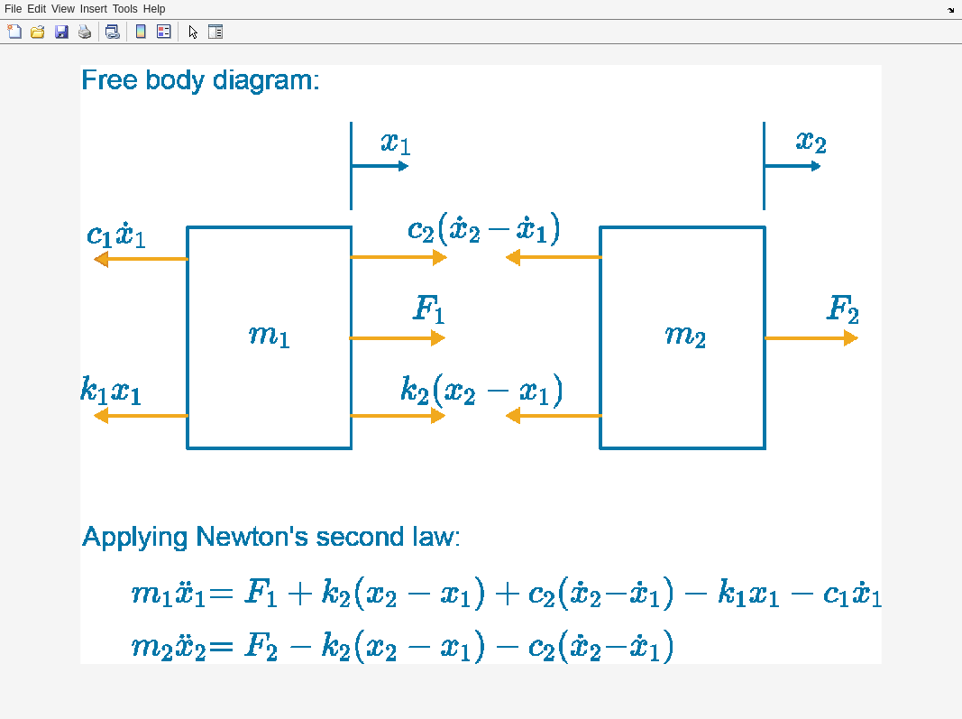 Running SmokeTests >> Running doubleMassSpringDamper.mlx msdEq1 = NaN msdEq2 = NaN [Warning: First equation not correct] [> In doubleMassSpringDamper>isEqualCheckCustom (line 37) In doubleMassSpringDamper>checkMSDeq (line 47) In doubleMassSpringDamper (line 10) In run (line 112) In SmokeTests/SmokeRun (line 79)] [Warning: Second equation not correct] [> In doubleMassSpringDamper>isEqualCheckCustom (line 37) In doubleMassSpringDamper>checkMSDeq (line 48) In doubleMassSpringDamper (line 10) In run (line 112) In SmokeTests/SmokeRun (line 79)] expr1 = NaN expr2 = NaN [Warning: First expression not correct] [> In doubleMassSpringDamper>isEqualCheckCustom (line 37) In doubleMassSpringDamper>checkExpressions (line 56) In doubleMassSpringDamper (line 13) In run (line 112) In SmokeTests/SmokeRun (line 79)] [Warning: Second expression not correct] [> In doubleMassSpringDamper>isEqualCheckCustom (line 37) In doubleMassSpringDamper>checkExpressions (line 57) In doubleMassSpringDamper (line 13) In run (line 112) In SmokeTests/SmokeRun (line 79)] [Warning: Not close enough.] [> In doubleMassSpringDamper>checkPart1 (line 135) In doubleMassSpringDamper (line 23) In run (line 112) In SmokeTests/SmokeRun (line 79)] [Warning: Not close enough.] [> In doubleMassSpringDamper>checkPart2 (line 143) In doubleMassSpringDamper (line 25) In run (line 112) In SmokeTests/SmokeRun (line 79)] [Warning: Not close enough.] [> In doubleMassSpringDamper>checkPart3 (line 151) In doubleMassSpringDamper (line 27) In run (line 112) In SmokeTests/SmokeRun (line 79)] [Terse] Diagnostic logged (2025-10-02 18:01:52): Figure saved to: --> /tmp/20838afe-9542-4be6-8ccd-f4418990427d/Figure_98dba861-6b75-4526-8296-976f786d37d9.png .>> Running massSpringDamper.mlx [Warning: x does not exist!] [> In massSpringDamper>checkSyms (line 37) In massSpringDamper (line 10) In run (line 112) In SmokeTests/SmokeRun (line 79)] [Warning: x_dot does not exist!] [> In massSpringDamper>checkSyms (line 37) In massSpringDamper (line 10) In run (line 112) In SmokeTests/SmokeRun (line 79)] [Warning: x_ddot does not exist!] [> In massSpringDamper>checkSyms (line 37) In massSpringDamper (line 10) In run (line 112) In SmokeTests/SmokeRun (line 79)] [Warning: m does not exist!] [> In massSpringDamper>checkSyms (line 37) In massSpringDamper (line 10) In run (line 112) In SmokeTests/SmokeRun (line 79)] [Warning: c does not exist!] [> In massSpringDamper>checkSyms (line 37) In massSpringDamper (line 10) In run (line 112) In SmokeTests/SmokeRun (line 79)] [Warning: k does not exist!] [> In massSpringDamper>checkSyms (line 37) In massSpringDamper (line 10) In run (line 112) In SmokeTests/SmokeRun (line 79)] [Warning: F does not exist!] [> In massSpringDamper>checkSyms (line 37) In massSpringDamper (line 10) In run (line 112) In SmokeTests/SmokeRun (line 79)] msdEq = NaN [Warning: Your answer does not match the expected result.] [> In massSpringDamper>isEqualCheck (line 47) In massSpringDamper>checkMSDeq (line 55) In massSpringDamper (line 12) In run (line 112) In SmokeTests/SmokeRun (line 79)] sltnMSD = NaN [Warning: Your answer does not match the expected result.] [> In massSpringDamper>isEqualCheck (line 47) In massSpringDamper>checkMSDSolve (line 62) In massSpringDamper (line 14) In run (line 112) In SmokeTests/SmokeRun (line 79)] [Warning: Your answer does not match the expected result.] [> In massSpringDamper>isEqualCheck (line 47) In massSpringDamper>checkFirstOrder (line 68) In massSpringDamper (line 17) In run (line 112) In SmokeTests/SmokeRun (line 79)] yourExpression = ' ' [Terse] Diagnostic logged (2025-10-02 18:02:31): Figure saved to: --> /tmp/20838afe-9542-4be6-8ccd-f4418990427d/Figure_67c22c1c-1e76-47c2-a15d-9062b5507606.png [Terse] Diagnostic logged (2025-10-02 18:02:32): Figure saved to: --> /tmp/20838afe-9542-4be6-8ccd-f4418990427d/Figure_12aaea1a-acb6-45b5-a675-559372594e6f.png .>> Running multipleMassSpringDamper.mlx [Warning: M Incorrect] [> In multipleMassSpringDamper>isEqualCheckCustom (line 51) In multipleMassSpringDamper>checkMatrices (line 82) In multipleMassSpringDamper (line 8) In run (line 112) In SmokeTests/SmokeRun (line 79)] [Warning: C Incorrect] [> In multipleMassSpringDamper>isEqualCheckCustom (line 51) In multipleMassSpringDamper>checkMatrices (line 83) In multipleMassSpringDamper (line 8) In run (line 112) In SmokeTests/SmokeRun (line 79)] [Warning: K Incorrect] [> In multipleMassSpringDamper>isEqualCheckCustom (line 51) In multipleMassSpringDamper>checkMatrices (line 84) In multipleMassSpringDamper (line 8) In run (line 112) In SmokeTests/SmokeRun (line 79)] [Warning: F Incorrect] [> In multipleMassSpringDamper>isEqualCheckCustom (line 51) In multipleMassSpringDamper>checkMatrices (line 85) In multipleMassSpringDamper (line 8) In run (line 112) In SmokeTests/SmokeRun (line 79)] [Warning: Incorrect. Use the peak finder tool.] [> In multipleMassSpringDamper>checkFrequencies (line 62) In multipleMassSpringDamper (line 31) In run (line 112) In SmokeTests/SmokeRun (line 79)] [Warning: Incorrect. Use the peak finder tool.] [> In multipleMassSpringDamper>checkPeriod (line 71) In multipleMassSpringDamper (line 43) In run (line 112) In SmokeTests/SmokeRun (line 79)] [Terse] Diagnostic logged (2025-10-02 18:02:34): Figure saved to: --> /tmp/20838afe-9542-4be6-8ccd-f4418990427d/Figure_ea9702a1-acf5-4fb0-91e1-38a91bc2dc8f.png . Done SmokeTests __________ Running SolnSmokeTests ...>> Running doubleMassSpringDamperSoln.mlx msdEq1 = m_1*x_ddot_1 == F_1 - c_1*x_dot_1 - k_1*x_1 - c_2*(x_dot_1 - x_dot_2) - k_2*(x_1 - x_2) msdEq2 = m_2*x_ddot_2 == F_2 + c_2*(x_dot_1 - x_dot_2) + k_2*(x_1 - x_2) First equation correct! Second equation correct! expr1 = -(c_1*x_dot_1 - F_1 + k_1*x_1 + c_2*(x_dot_1 - x_dot_2) + k_2*(x_1 - x_2))/m_1 expr2 = (F_2 + c_2*(x_dot_1 - x_dot_2) + k_2*(x_1 - x_2))/m_2 First expression correct! Second expression correct! Close enough! Close enough! Close enough! [Terse] Diagnostic logged (2025-10-02 18:02:58): Figure saved to