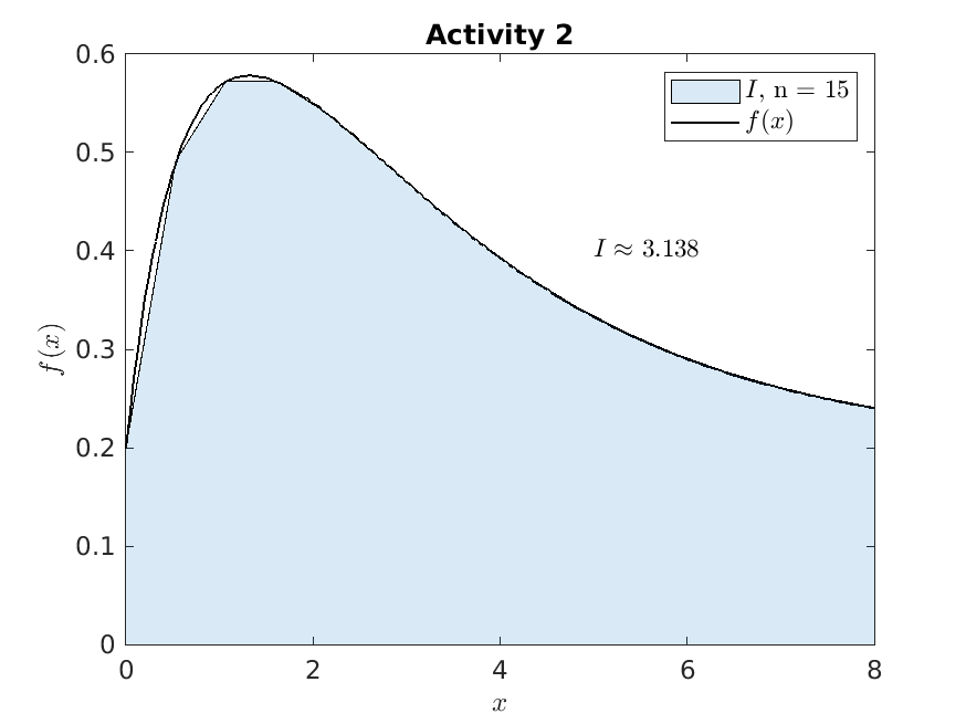Running SmokeTests >> Running SimpsonsRules.mlx n = 3 T = 1x3 table k x_k x_(k+1) _ _____ _______ 1 "x_1" "x_2" k x_k x_(k+1) _ _____ _______ 1 "x_1" "x_2" I = NaN I = 31.8328 True Integral: 14.5833 Approximate Integral: 14.5833 Error: 0.000% [Terse] Diagnostic logged (2025-09-24 22:23:46): Figure saved to: --> /tmp/4067e457-a56e-42f2-b1eb-bd08a76b35b6/Figure_83b54ea8-81d8-4ed9-985d-44e717e6ce6e.png .>> Running TrapezoidRule.mlx T = 26x2 table x y ____ _______ 0 2 0.25 2.4392 0.5 2 0.75 0.7071 1 -1 1.1 -1.6473 1.15 -1.9403 1.2 -2.2058 1.2 -2.2058 1.3 -2.6361 1.4 -2.9074 1.5 -3 1.6 -2.9074 1.7 -2.6361 1.8 -2.2058 1.9 -1.6473 2 -1 2.1 -0.309 2.2 0.3787 2.3 1.0181 2.4 1.5691 2.5 2 2.6 2.2893 2.6 2.2893 2.8 2.4149 3 2 I = 0.000 dx = 0.2500 0.2500 0.2500 0.2500 0.1000 0.0500 0.0500 0 0.1000 0.1000 0.1000 0.1000 0.1000 0.1000 0.1000 0.1000 0.1000 0.1000 0.1000 0.1000 0.1000 0.1000 0 0.2000 0.2000 ysub = 2.0000 2.4392 2.0000 0.7071 -1.0000 -1.6473 -1.9403 -2.2058 -2.2058 -2.6361 -2.9074 -3.0000 -2.9074 -2.6361 -2.2058 -1.6473 -1.0000 -0.3090 0.3787 1.0181 1.5691 2.0000 2.2893 2.2893 2.4149 [Terse] Diagnostic logged (2025-09-24 22:23:50): Figure saved to: --> /tmp/4067e457-a56e-42f2-b1eb-bd08a76b35b6/Figure_5e7e90e4-bb31-442c-a5d5-017a9ef8983d.png . Done SmokeTests __________ Running SolnSmokeTests ..>> Running SimpsonsRulesSoln.mlx n = 10 T = 4x3 table k x_k x_(k+1) _ _____ _______ 1 "x_1" "x_2" 3 "x_3" "x_4" 5 "x_5" "x_6" 7 "x_7" "x_8" k x_k x_(k+1) _ _____ _______ 1 "x_1" "x_2" 3 "x_3" "x_4" 5 "x_5" "x_6" 7 "x_7" "x_8" I = 31.8447 I = 31.8447 I = 31.8328 True Integral: 3.8499 Approximate Integral: 3.9666 Error: 3.032% f = function_handle with value: @(x)exp(-0.5*x)-exp(-0.25*x) I = -1.8789 I = -1.9642 I = -1.9729 g = function_handle with value: @(x)exp(-0.1*x).*cos(pi/2.*x) I = 0.7402 I = -0.0527 I = 0.0323 [Terse] Diagnostic logged (2025-09-24 22:23:51): Figure saved to: --> /tmp/4067e457-a56e-42f2-b1eb-bd08a76b35b6/Figure_8c0197df-7897-4d6b-8d6c-78240743d4b5.png .>> Running TrapezoidRuleSoln.mlx F = 27.2457 T = 26x2 table x y ____ _______ 0 2 0.25 2.4392 0.5 2 0.75 0.7071 1 -1 1.1 -1.6473 1.15 -1.9403 1.2 -2.2058 1.2 -2.2058 1.3 -2.6361 1.4 -2.9074 1.5 -3 1.6 -2.9074 1.7 -2.6361 1.8 -2.2058 1.9 -1.6473 2 -1 2.1 -0.309 2.2 0.3787 2.3 1.0181 2.4 1.5691 2.5 2 2.6 2.2893 2.6 2.2893 2.8 2.4149 3 2 I = 0.574 dx = 0.2500 0.2500 0.2500 0.2500 0.1000 0.0500 0.0500 0 0.1000 0.1000 0.1000 0.1000 0.1000 0.1000 0.1000 0.1000 0.1000 0.1000 0.1000 0.1000 0.1000 0.1000 0 0.2000 0.2000 ysub = 2.0000 2.4392 2.0000 0.7071 -1.0000 -1.6473 -1.9403 -2.2058 -2.2058 -2.6361 -2.9074 -3.0000 -2.9074 -2.6361 -2.2058 -1.6473 -1.0000 -0.3090 0.3787 1.0181 1.5691 2.0000 2.2893 2.2893 2.4149 I = 0.5736 [Terse] Diagnostic logged (2025-09-24 22:23:52): Figure saved to: --> /tmp/4067e457-a56e-42f2-b1eb-bd08a76b35b6/Figure_02d0034d-7d08-4d5f-9af2-0b55034c8fd2.png [Terse] Diagnostic logged (2025-09-24 22:23:54): Figure saved to: --> /tmp/4067e457-a56e-42f2-b1eb-bd08a76b35b6/Figure_5836b65e-c418-49fb-833e-deafb957ce5a.png . Done SolnSmokeTests __________