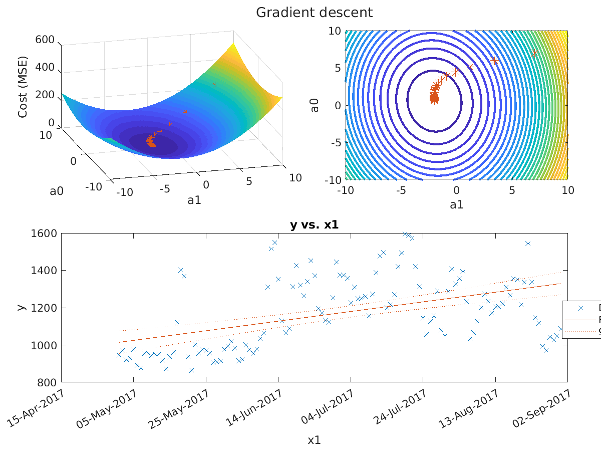 Running SmokeTests >> Running ElectricityLoadData.mlx Downloading 1 of 4 -> 20170501pal_csv.zip Download complete. Downloading 2 of 4 -> 20170601pal_csv.zip Download complete. Downloading 3 of 4 -> 20170701pal_csv.zip Download complete. Downloading 4 of 4 -> 20170801pal_csv.zip Download complete. Aggregating data from all files [Warning: Table variable names that were not valid MATLAB identifiers have been modified. Since table variable names must be unique, any table variable names that happened to match the new identifiers also have been modified.] Starting parallel pool (parpool) using the 'Processes' profile ... Connected to parallel pool with 2 workers. Preprocessing and cleaning data MAT files saved in /home/runner/work/Regression-Basics/Regression-Basics/Scripts\ElectricLoadData .>> Running RegressionBasics.mlx [Warning: While loading an object of class 'matlab.graphics.illustration.Legend': Error setting property 'DisplayName' of class 'FunctionLine': Value must be a character vector or a string scalar.] [> In matlab.graphics.internal.figfile.FigFile/read (line 28) In matlab.graphics.internal.figfile/FigFile In loadFigure (line 31) In openfig>localOpenFigure (line 75) In openfig (line 40) In RegressionBasics (line 14) In run (line 112) In SmokeTests/SmokeRun (line 79)] xbar = 2.6622e+03 ybar = 3.7550e+05 Use the drop-down to reveal a likely solution Use the drop-down to reveal a likely solution Use the drop-down to reveal a likely solution Use the dropdown to reveal a likely solution tt = 123x11 timetable Date CAPITL CENTRL DUNWOD GENESE HUDVL LONGIL MHKVL MILLWD N_Y_C_ NORTH WEST ___________________ ______ ______ ______ ______ ______ ______ ______ ______ ______ ______ ______ 05/01/2017 00:00:00 1142.8 1681.8 597.13 1037 947.06 1996.7 817.56 273.31 5406.6 462.98 1627.5 05/02/2017 00:00:00 1152.4 1631.5 624.4 1015.3 972.21 2065.3 781.04 286.14 5699.1 448.12 1621 05/03/2017 00:00:00 1118.2 1645.8 589.76 1012 921.7 1956.2 766.2 271.6 5358 456.97 1627.3 05/04/2017 00:00:00 1132.5 1692.8 584.73 1036.9 931.4 1917.6 764.43 263.84 5236.1 454.37 1687.6 05/05/2017 00:00:00 1158.5 1675.9 610.03 1035.7 978.68 2056.2 793.48 274.77 5355.4 455.89 1697.1 05/06/2017 00:00:00 1062.7 1500 550.41 947.15 893.31 1847 743.07 250.3 4853.1 426.9 1581.5 05/07/2017 00:00:00 1055.4 1519.9 526.39 942.13 879.83 1801.8 739.03 257.15 4671.1 430.13 1540.6 05/08/2017 00:00:00 1156.3 1683.9 579.09 1035.2 958.1 1935 822.28 272.58 5241.2 468.8 1663.6 05/09/2017 00:00:00 1170.4 1682.3 578.39 1029.1 956.3 1959.2 804.53 279.54 5273.5 470.49 1675.2 05/10/2017 00:00:00 1151 1642.6 577.15 1017 945.8 1943.5 798.1 272.4 5262.3 455.77 1654.3 05/11/2017 00:00:00 1123.1 1619.1 581.62 1018.2 950.38 1951 785.49 279.87 5229.7 440.26 1652 05/12/2017 00:00:00 1117.7 1582.2 565.41 1001.3 954.72 1943.1 769.31 275.47 5234 438.5 1640.2 05/13/2017 00:00:00 1077.3 1483.5 562.92 911.83 918.75 1966.6 731.02 277.75 4860.5 430.66 1477.1 05/14/2017 00:00:00 1042 1464.4 533.61 874.48 872.64 1793.7 726.28 273.12 4658.1 429.96 1425.7 05/15/2017 00:00:00 1145.5 1622.4 587.02 983.48 937.51 1978.8 805.4 283.54 5263 450.4 1606.7 05/16/2017 00:00:00 1140.3 1626.6 611.38 994.62 961.25 2060.2 780 295.75 5507.9 430.73 1647.4 05/17/2017 00:00:00 1277.8 1742.8 730.9 1116.8 1124.4 2311.4 841.22 335.02 6286.7 443.84 1749 05/18/2017 00:00:00 1457.9 1881.8 889.01 1224.7 1402.9 2821.8 901.2 437.94 7492.3 459.91 1838.2 05/19/2017 00:00:00 1332.7 1709.7 958.63 1029.1 1369.8 3075.5 809.81 402.88 7958.8 440.94 1654.6 05/20/2017 00:00:00 1095.3 1487.7 624.1 873.76 937.18 2107.8 697.5 258.67 5462.3 422.94 1514.5 05/21/2017 00:00:00 1108.4 1471.6 547.79 874.85 865.79 1875.7 719.71 245.01 4840.8 427.09 1476.2 05/22/2017 00:00:00 1213.8 1653.2 606.17 988.9 1001.5 2135.5 792.28 251.56 5502.7 440.09 1622.3 05/23/2017 00:00:00 1195.1 1640.3 607.51 1026.9 956.74 2100.5 767.18 259.43 5512.7 438.62 1643.1 05/24/2017 00:00:00 1238.6 1665.5 577.99 1043.7 975.72 2123.3 761.19 285.75 5511.2 437.31 1657.9 05/25/2017 00:00:00 1244.2 1646 543.59 1020.7 973.84 2156.8 784.44 330.18 5433.9 443.33 1618.3 05/26/2017 00:00:00 1210.5 1649.9 557.53 994 957.64 2175.3 800.11 330.99 5462 439.26 1583.8 05/27/2017 00:00:00 1075.4 1525.1 578.14 877.75 905.76 2065.3 698.95 254.88 4956.1 426.77 1416.8 05/28/2017 00:00:00 1095.8 1506.1 535.19 872.61 911.79 1978.2 725.53 269.91 4771.3 414.72 1436.5 05/29/2017 00:00:00 1133 1557.3 496.72 929.67 918.01 2008.5 744.88 306.32 4792.5 419.48 1465.6 05/30/2017 00:00:00 1189.6 1712.8 550.54 1069.1 977.73 2098.6 760.6 302.42 5326.3 442.76 1646.6 05/31/2017 00:00:00 1180.9 1687.7 613.81 1076.6 995.87 2210.3 741.79 283.22 5606.6 447.54 1659.3 06/01/2017 00:00:00 1167.3 1666.9 667.43 1020.1 1022.3 2340 738.88 299.57 5864 448.76 1646.2 06/02/2017 00:00:00 1139 1589.8 642.27 982.84 983.65 2234.5 731.08 278.03 5745.2 455.51 1613.7 06/03/2017 00:00:00 1071.7 1456.2 553.78 885.11 916.79 2031.7 679.2 264.38 5009.2 439.16 1517 06/04/2017 00:00:00 1098.7 1500.8 545.69 889.06 926.09 1978.5 693.39 267.33 4900.6 428.14 1514.3 06/05/2017 00:00:00 1203 1679.6 611.13 1018.9 1003.8 2188.5 743.55 290.75 5659.3 459.61 1709.5 06/06/2017 00:00:00 1220.8 1650.1 594.95 1018.1 974.84 2124.2 755.68 294.4 5393.4 461.19 1697.9 06/07/2017 00:00:00 1168.2 1607.2 581.51 1013.5 957.88 2075.3 731.93 287.37 5340.9 455.56 1692.4 06/08/2017 00:00:00 1215.3 1667.3 598.76 1048.4 978.92 2108 705.7 279.11 5440.9 458.06 1729 06/09/2017 00:00:00 1229.4 1664.4 622.2 1065.1 1034.4 2257.2 703.7 291.92 5654.1 452.23 1737.9 06/10/2017 00:00:00 1220.9 1637.7 669.83 1058.2 1065.4 2449.1 719.03 335.25 5753.2 438.43 1673.7 06/11/2017 00:00:00 1419.1 1817.7 820.03 1180.7 1311.1 2790.2 823.74 396.22 6602.8 448.57 1743.5 06/12/2017 00:00:00 1692.2 2142.5 1012.1 1436.4 1514.2 3431.2 996.72 467.11 8310.1 466.31 2006.9 06/13/2017 00:00:00 1690.6 2121.5 1072.8 1343 1550 3683.1 985.07 480.53 8891.2 463.2 1979.2 06/14/2017 00:00:00 1394.6 1835.6 926.23 1166.8 1354.3 3126.6 876.49 426.32 7912.6 443.17 1884.9 06/15/2017