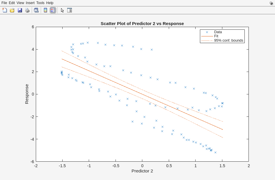 Running SmokeTests >> Running CurvilinearRegression.mlx Data loaded. [Warning: Select a valid option.] [> In CurvilinearRegression (line 9) In run (line 112) In SmokeTests/SmokeRun (line 79)] .>> Running LinearRegression.mlx [Warning: Select a valid option.] [> In LinearRegression (line 13) In run (line 112) In SmokeTests/SmokeRun (line 79)] [Terse] Diagnostic logged (2026-04-14 17:55:20): Figure saved to: --> /tmp/c0c7b2a2-d5d5-45de-874b-ce5a3fb8d67c/Figure_97e1568d-a748-4569-92ba-2f7f202f3be5.png [Terse] Diagnostic logged (2026-04-14 17:55:26): Figure saved to: --> /tmp/c0c7b2a2-d5d5-45de-874b-ce5a3fb8d67c/Figure_80220386-0fa1-4421-8bb3-db448694cb6a.png .>> Running MultipleRegression.mlx t QkW mDot dT ____________________ ______ _______ ______ 01-Jan-2026 08:00:00 339.94 1.3678 20.514 01-Jan-2026 08:01:00 325.49 1.3845 19.116 01-Jan-2026 08:02:00 388.06 1.6627 22.893 01-Jan-2026 08:03:00 351.65 1.472 20.897 01-Jan-2026 08:04:00 334.66 1.3956 19.908 01-Jan-2026 08:05:00 332.5 1.29 20.276 01-Jan-2026 08:06:00 367.4 1.4329 22.537 01-Jan-2026 08:07:00 251.48 0.98919 15.213 [Warning: Select a valid option.] [> In MultipleRegression (line 18) In run (line 112) In SmokeTests/SmokeRun (line 79)] [Terse] Diagnostic logged (2026-04-14 17:55:29): Figure saved to: --> /tmp/c0c7b2a2-d5d5-45de-874b-ce5a3fb8d67c/Figure_9efd1fb6-d7e3-43b5-afdb-513bd3af13cc.png .>> Running TryCurvilinear.mlx xPl yPl _______ ________ 0.1 0.050052 0.10476 0.070577 0.10975 0.070578 0.11498 0.054164 0.12045 0.070383 0.12619 0.073232 0.13219 0.10349 0.13849 0.098113 [Warning: Select a valid option.] [> In TryCurvilinear>plotDataByAxis (line 103) In TryCurvilinear (line 7) In run (line 112) In SmokeTests/SmokeRun (line 79)] Answer = "Select" [Warning: Select a valid answer.] [> In TryCurvilinear>checkAnswer (line 176) In TryCurvilinear (line 10) In run (line 112) In SmokeTests/SmokeRun (line 79)] t SOH _______ ______ 0 100 0.20833 100 0.41667 100 0.62444 85.076 0.83278 92.149 1.0411 90.785 1.2489 90.513 1.4572 88.018 t Temp _______ ________ 0 0.024668 0.10101 0.22398 0.20202 0.40486 0.30303 0.63178 0.40404 0.80671 0.50505 1.0616 0.60606 1.0752 0.70707 1.3075 [Warning: Select a valid option.] [> In TryCurvilinear>plotDataByAxis (line 103) In TryCurvilinear (line 61) In run (line 112) In SmokeTests/SmokeRun (line 79)] [Warning: Select a valid answer.] [> In TryCurvilinear>checkAnswer (line 176) In TryCurvilinear (line 62) In run (line 112) In SmokeTests/SmokeRun (line 79)] [Terse] Diagnostic logged (2026-04-14 17:55:33): Figure saved to: --> /tmp/c0c7b2a2-d5d5-45de-874b-ce5a3fb8d67c/Figure_a7808467-ad66-45a0-aac8-3ebe6ec4f67e.png .>> Running TryCurvilinearPolynomial.mlx x y ________ _______ -2 -21.021 -1.8333 -16.422 -1.6667 -13.201 -1.5 -9.7751 -1.3333 -7.0441 -1.1667 -3.7099 -1 -4.1085 -0.83333 -1.3689 PredictedValue = 0.3907 x yPred _____ ________ -1.6 -11.422 -0.53 -0.65909 0.38 0.12907 1.9 10.909 Temp Prod ______ ______ 30.03 9.098 30.042 10.031 30.094 10.961 30.285 11.148 30.352 11.819 30.474 12.469 30.732 12.515 31.202 14.789 [Terse] Diagnostic logged (2026-04-14 17:55:37): Figure saved to: --> /tmp/c0c7b2a2-d5d5-45de-874b-ce5a3fb8d67c/Figure_d0bf5e53-871f-44ac-b2a0-76eab15dd9bb.png .>> Running TryMultiple.mlx x1 x2 x3 y _______ ________ _______ _______ -1.7194 -0.15847 1.4311 -2.4825 -1.705 0.025031 1.2888 -2.7979 -1.5807 0.20412 1.2823 -2.8261 -1.5985 0.43912 1.1724 -3.271 -1.5579 0.60171 1.0096 -3.5088 -1.5347 0.73684 0.84606 -3.7694 -1.4779 0.86728 0.64598 -3.9416 -1.4885 0.97168 0.28359 -4.3053 mdl = Linear regression model: y ~ 1 + x1 + x2 + x3 Estimated Coefficients: Estimate SE tStat pValue __________ _________ _______ ___________ (Intercept) -0.0013315 0.0010606 -1.2554 0.21239 x1 1.9996 0.0011149 1793.5 5.0426e-219 x2 -1.5001 0.0011149 -1345.5 4.8396e-207 x3 0.50031 0.001066 469.35 3.8553e-163 Number of observations: 100, Error degrees of freedom: 96 Root Mean Squared Error: 0.0106 R-squared: 1, Adjusted R-Squared: 1 F-statistic vs. constant model: 2.42e+06, p-value = 5.35e-234 ans = 3×5 table SumSq DF MeanSq F pValue ________ __ __________ __________ ___________ Total 816.34 99 8.2459 Model 816.33 3 272.11 2.4191e+06 5.3501e-234 Residual 0.010799 96 0.00011249 X1 X2 Y __________ ________ ______ -0.0016986 -0.0176 4.8821 0.091828 0.088371 5.4067 0.16769 0.16157 5.8287 0.24804 0.25668 6.2525 0.35227 0.33424 6.763 0.43052 0.4284 7.1216 0.51419 0.49762 7.4951 0.584 0.58824 7.9236 mdl = Linear regression model: Y ~ 1 + X1 + X2 Estimated Coefficients: Estimate SE tStat pValue ________ _________ ______ ___________ (Intercept) 4.9946 0.0099354 502.71 6.1697e-197 X1 2.0159 0.39465 5.108 1.2788e-06 X2 2.9849 0.39486 7.5592 9.9472e-12 Number of observations: 120, Error degrees of freedom: 117 Root Mean Squared Error: 0.0548 R-squared: 1, Adjusted R-Squared: 1 F-statistic vs. constant model: 4.24e+06, p-value = 4.83e-285 ans = 3×5 table SumSq DF MeanSq F pValue _______ ___ _________ __________ ___________ Total 25417 119 213.59 Model 25417 2 12708 4.2388e+06 4.8349e-285 Residual 0.35078 117 0.0029981 Tbl = 200×4 table TrafficLoad ActiveModules AmbientTemp DCPower ___________ _____________ ___________ _______ 0.375 8 31 204.57 0.951 4 21 226.44 0.732 1 19 164.85 0.599 8 30 234.76 0.156 4 31 153.41 0.156 6 35 166.61 0.058 8 23 172.29 0.866 4 22 217.05 0.601 3 31 188.35 0.708 9 22 235.89 0.021 3 34 120.37 0.97 9 32 282.17 0.832 2 24 189.79 0.212 2 30 134.97 0.182 2 30 133.42 0.183 6 17 127.34 0.304 3 33 159.27 0.525 9 25 222.97 0.432 4 32 185.24 0.291 1 21 134.69 0.612 4 33 211.6 0.139 1 23 103.95 0.292 5 15 141.99 0.366 4 33 180.26 0.456 8 17 189.59 0.785 8 21 230.48 0.2 7 34 199.96 0.514 3 34 184.24 0.592 1 26 163.78 0.046 1 28 87.49 0.608 3 24 189.67 0.171 6 21 141.86 0.065 7 22 146.4 0.949 6 28 262.29 0.966 6 30 251.17 0.808 6 31 241.89 0.305 3 31 168.93 0.098 6 17 115.3 0.684 8 25 226.96 0.44 2 16 135.81 0.122 5 26 142.14 0.495 1 24 152.78 0.034 1 33 102.77 0.909 5 22 226.91 0.259 3 17 124.88 0.663 4 18 185.49 0.312
