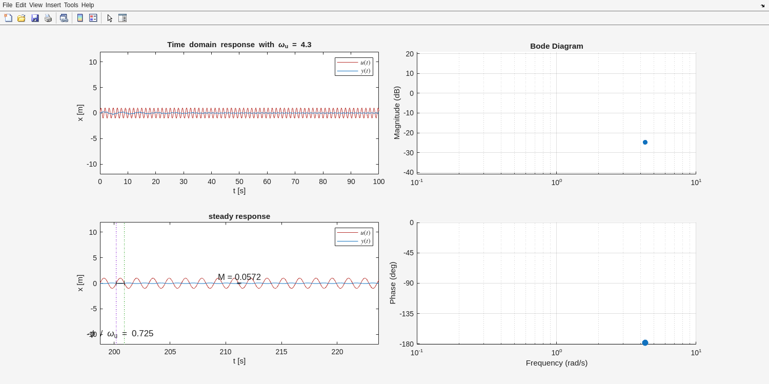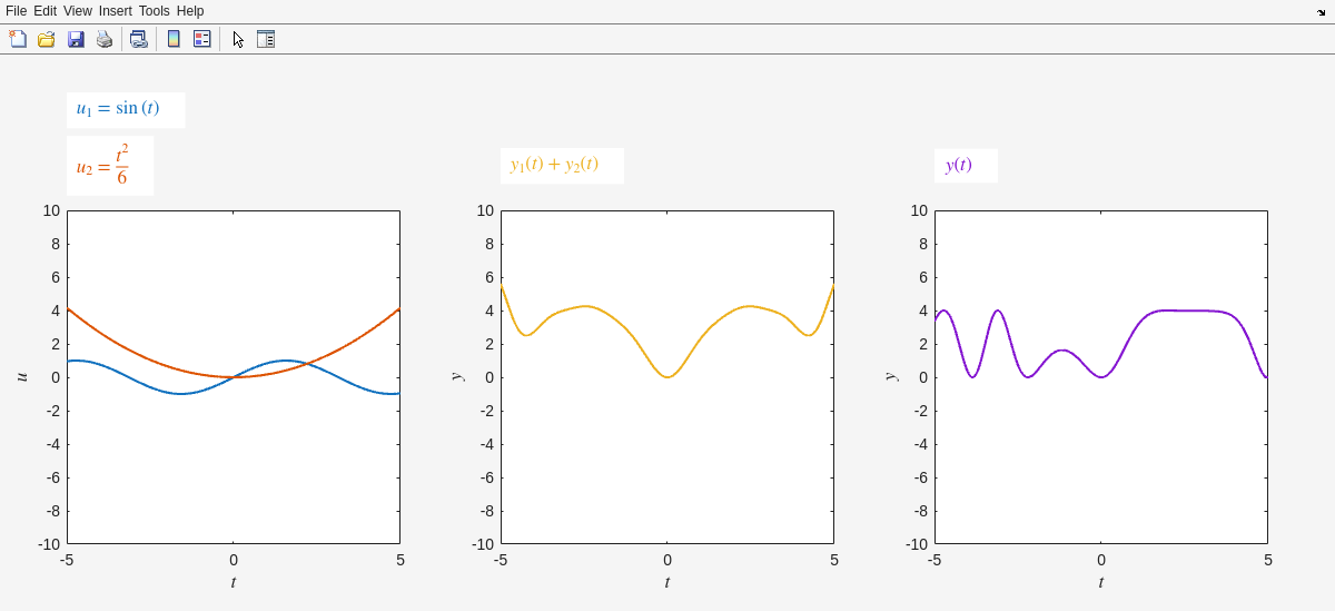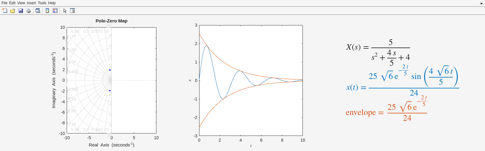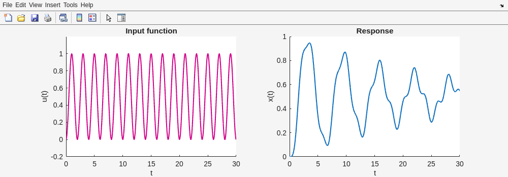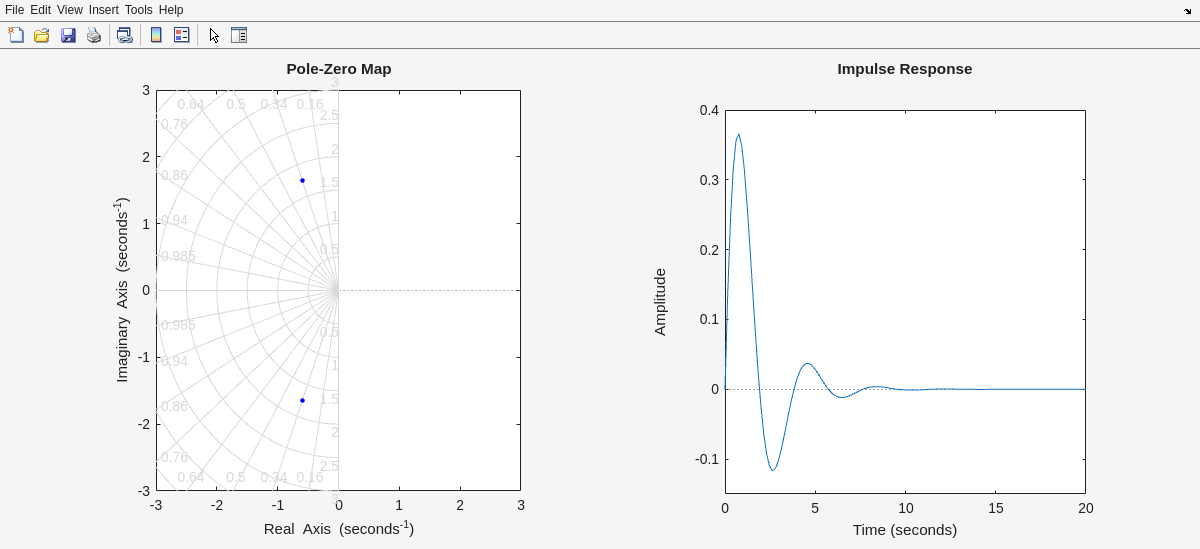 Running SmokeTests >> Running ConceptReview.mlx f = heaviside(t - a) Fs = exp(-a*s)/s dfdt(t) = diff(f(t), t) Fs = s*laplace(f(t), t, s) - f(0) d2fdt2(t) = diff(f(t), t, t) Fs = s^2*laplace(f(t), t, s) - subs(diff(f(t), t), t, 0) - s*f(0) X = 10/(s^3 + 2*s^2 + 10*s) Xdecomp = 1/s - (s + 2)/(s^2 + 2*s + 10) x = 1 - exp(-t)*(cos(3*t) + sin(3*t)/3) [Terse] Diagnostic logged (2025-09-29 20:23:18): Figure saved to: --> /tmp/e48880c3-6566-41d7-95c3-9692a6816aca/Figure_cb80f4ee-cfb8-48c1-9950-e7bf5a2b6e90.png [Terse] Diagnostic logged (2025-09-29 20:23:28): Figure saved to: --> /tmp/e48880c3-6566-41d7-95c3-9692a6816aca/Figure_e3dc08c8-5f5b-4269-8946-0a29d1bba2ab.png [Terse] Diagnostic logged (2025-09-29 20:23:29): Figure saved to: --> /tmp/e48880c3-6566-41d7-95c3-9692a6816aca/Figure_9ff91da0-7aa5-4a0a-ae2b-aec901a5d5ad.png [Terse] Diagnostic logged (2025-09-29 20:23:29): Figure saved to: --> /tmp/e48880c3-6566-41d7-95c3-9692a6816aca/Figure_8d3c0539-ea84-4ab0-9c88-c17c99122fc0.png [Terse] Diagnostic logged (2025-09-29 20:23:30): Figure saved to: --> /tmp/e48880c3-6566-41d7-95c3-9692a6816aca/Figure_d1b203d1-0e8f-4943-9879-b5be19dfcf5d.png .>> Running FrequencyDomainAnalysis.mlx [Warning: Your answer does not match the expected result.] [> In FrequencyDomainAnalysis>isEqualCheck (line 232) In FrequencyDomainAnalysis>check1 (line 238) In FrequencyDomainAnalysis (line 6) In run (line 112) In SmokeTests/SmokeRun (line 78)] [Warning: Your answer does not match the expected result.] [> In FrequencyDomainAnalysis>isEqualCheck (line 232) In FrequencyDomainAnalysis>check2 (line 243) In FrequencyDomainAnalysis (line 12) In run (line 112) In SmokeTests/SmokeRun (line 78)] Giomega = Columns 1 through 4 1.0100 - 0.0102i 1.0144 - 0.0123i 1.0197 - 0.0145i 1.0258 - 0.0168i Columns 5 through 8 1.0329 - 0.0191i 1.0409 - 0.0216i 1.0498 - 0.0242i 1.0598 - 0.0268i Columns 9 through 12 1.0709 - 0.0297i 1.0831 - 0.0327i 1.0966 - 0.0359i 1.1113 - 0.0394i Columns 13 through 16 1.1274 - 0.0430i 1.1450 - 0.0470i 1.1642 - 0.0513i 1.1851 - 0.0560i Columns 17 through 20 1.2079 - 0.0611i 1.2328 - 0.0667i 1.2599 - 0.0728i 1.2896 - 0.0796i Columns 21 through 24 1.3219 - 0.0872i 1.3573 - 0.0957i 1.3962 - 0.1052i 1.4389 - 0.1159i Columns 25 through 28 1.4858 - 0.1281i 1.5377 - 0.1421i 1.5953 - 0.1583i 1.6592 - 0.1770i Columns 29 through 32 1.7306 - 0.1989i 1.8107 - 0.2248i 1.9009 - 0.2558i 2.0032 - 0.2931i Columns 33 through 36 2.1200 - 0.3387i 2.2540 - 0.3952i 2.4092 - 0.4664i 2.5903 - 0.5577i Columns 37 through 40 2.8035 - 0.6773i 3.0563 - 0.8376i 3.3584 - 1.0588i 3.7197 - 1.3739i Columns 41 through 44 4.1472 - 1.8391i 4.6292 - 2.5526i 5.0884 - 3.6809i 5.2418 - 5.4549i Columns 45 through 48 4.3342 - 7.9003i 1.4287 - 9.8658i -2.3312 - 9.2903i -4.3949 - 6.8768i Columns 49 through 52 -4.7505 - 4.6570i -4.4172 - 3.1680i -3.9309 - 2.2307i -3.4662 - 1.6319i Columns 53 through 56 -3.0647 - 1.2357i -2.7275 - 0.9635i -2.4455 - 0.7699i -2.2085 - 0.6280i Columns 57 through 60 -2.0080 - 0.5212i -1.8368 - 0.4390i -1.6893 - 0.3744i -1.5611 - 0.3229i Columns 61 through 64 -1.4490 - 0.2811i -1.3502 - 0.2468i -1.2625 - 0.2183i -1.1843 - 0.1944i Columns 65 through 68 -1.1141 - 0.1742i -1.0508 - 0.1568i -0.9934 - 0.1419i -0.9413 - 0.1290i Columns 69 through 72 -0.8937 - 0.1177i -0.8500 - 0.1078i -0.8099 - 0.0991i -0.7729 - 0.0914i Columns 73 through 76 -0.7387 - 0.0845i -0.7070 - 0.0783i -0.6776 - 0.0728i -0.6501 - 0.0678i Columns 77 through 80 -0.6245 - 0.0633i -0.6005 - 0.0593i -0.5780 - 0.0556i -0.5569 - 0.0522i Columns 81 through 84 -0.5371 - 0.0491i -0.5184 - 0.0462i -0.5007 - 0.0436i -0.4841 - 0.0412i Columns 85 through 88 -0.4683 - 0.0390i -0.4534 - 0.0370i -0.4392 - 0.0351i -0.4258 - 0.0333i Columns 89 through 92 -0.4130 - 0.0317i -0.4008 - 0.0301i -0.3892 - 0.0287i -0.3782 - 0.0274i Columns 93 through 96 -0.3676 - 0.0261i -0.3575 - 0.0250i -0.3479 - 0.0239i -0.3387 - 0.0229i Columns 97 through 100 -0.3298 - 0.0219i -0.3214 - 0.0210i -0.3133 - 0.0201i -0.3055 - 0.0193i Columns 101 through 104 -0.2980 - 0.0186i -0.2908 - 0.0179i -0.2839 - 0.0172i -0.2772 - 0.0165i Columns 105 through 108 -0.2708 - 0.0159i -0.2646 - 0.0153i -0.2587 - 0.0148i -0.2529 - 0.0143i Columns 109 through 112 -0.2474 - 0.0138i -0.2420 - 0.0133i -0.2369 - 0.0128i -0.2319 - 0.0124i Columns 113 through 116 -0.2271 - 0.0120i -0.2224 - 0.0116i -0.2179 - 0.0112i -0.2135 - 0.0109i Columns 117 through 120 -0.2093 - 0.0105i -0.2052 - 0.0102i -0.2012 - 0.0099i -0.1973 - 0.0096i Columns 121 through 124 -0.1936 - 0.0093i -0.1899 - 0.0090i -0.1864 - 0.0088i -0.1830 - 0.0085i Columns 125 through 128 -0.1797 - 0.0083i -0.1764 - 0.0080i -0.1733 - 0.0078i -0.1702 - 0.0076i Columns 129 through 132 -0.1673 - 0.0074i -0.1644 - 0.0072i -0.1616 - 0.0070i -0.1588 - 0.0068i Columns 133 through 136 -0.1562 - 0.0066i -0.1536 - 0.0065i -0.1510 - 0.0063i -0.1486 - 0.0061i Columns 137 through 140 -0.1462 - 0.0060i -0.1438 - 0.0058i -0.1415 - 0.0057i -0.1393 - 0.0056i Columns 141 through 144 -0.1371 - 0.0054i -0.1350 - 0.0053i -0.1330 - 0.0052i -0.1309 - 0.0050i Columns 145 through 148 -0.1290 - 0.0049i -0.1270 - 0.0048i -0.1251 - 0.0047i -0.1233 - 0.0046i Columns 149 through 152 -0.1215 - 0.0045i -0.1197 - 0.0044i -0.1180 - 0.0043i -0.1163 - 0.0042i Columns 153 through 156 -0.1147 - 0.0041i -0.1131 - 0.0040i -0.1115 - 0.0039i -0.1100 - 0.0038i Columns 157 through 160 -0.1085 - 0.0038i -0.1070 - 0.0037i -0.1056 - 0.0036i -0.1041 - 0.0035i Columns 161 through 164 -0.1027 - 0.0035i -0.1014 - 0.0034i -0.1001 - 0.0033i -0.0988 - 0.0033i Columns 165 through 168 -0.0975 - 0.0032i -0.0962 - 0.0031i -0.0950 - 0.0031i -0.0938 - 0.0030i Columns 169 through 172 -0.0926 - 0.0029i -0.0915 - 0.0029i -0.0903 - 0.0028i -0.0892 - 0.0028i Columns 173 through 176 -0.0881 - 0.0027i -0.0870 - 0.0027i -0.0860 - 0.0026i -0.0850 - 0.0026i Columns 177 through 180 -0.0840 - 0.0025i -0.0830 - 0.0025i -0.0820 - 0.0024i -0.0810 - 0.0024i Columns 181 through 184 -0.0801 - 0.0024i -0.0792 - 0.0023i -0.0782 - 0.0023i -0.0773 - 0